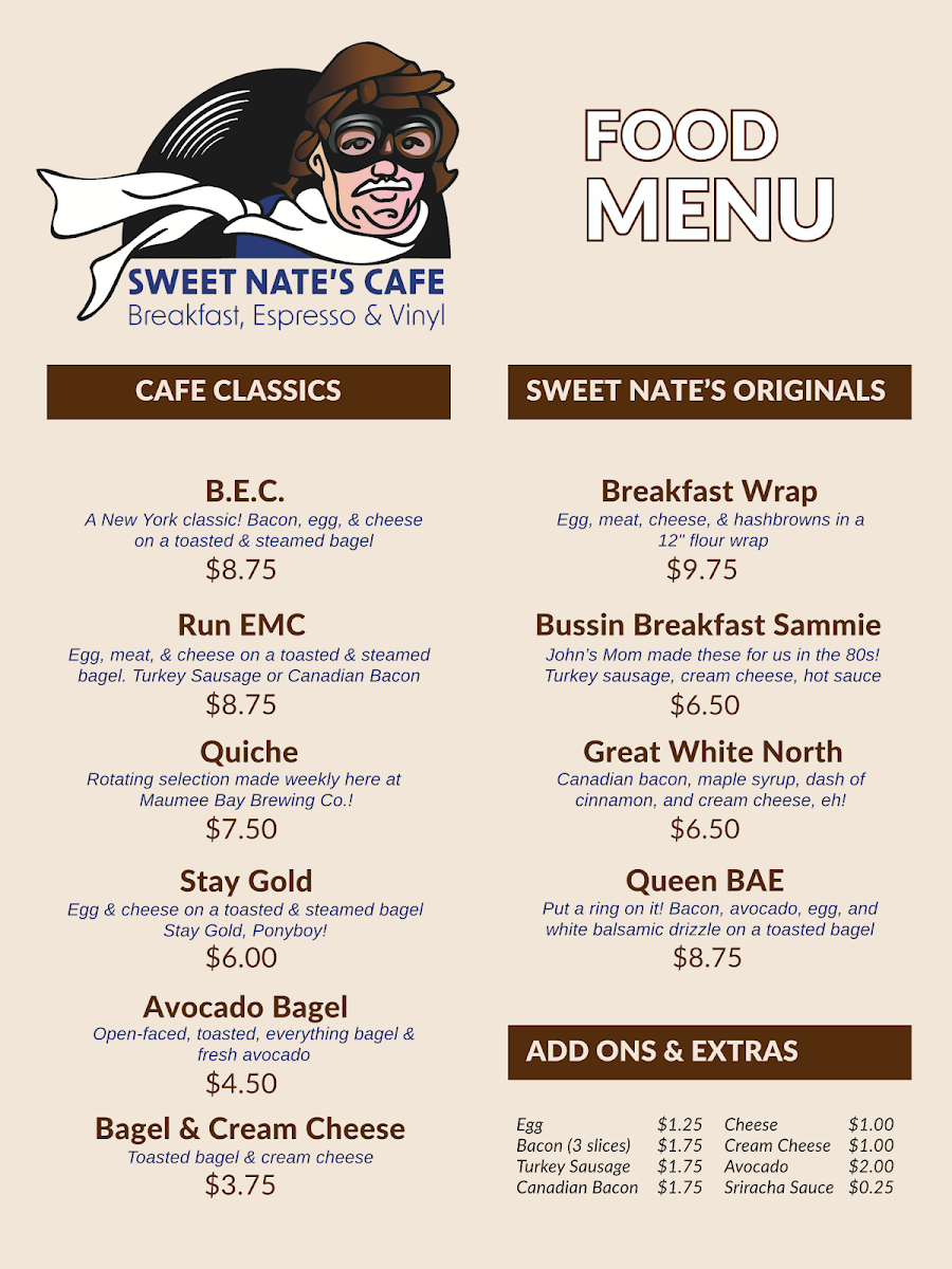 Sweet Nate's Cafe Menu